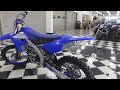 The YZ250F boasts top-spec details including 1-1/8” aluminum tapered handlebars, wide 55mm foot pegs, a quick-adjust clutch perch, stylish blue rims and gold chain.